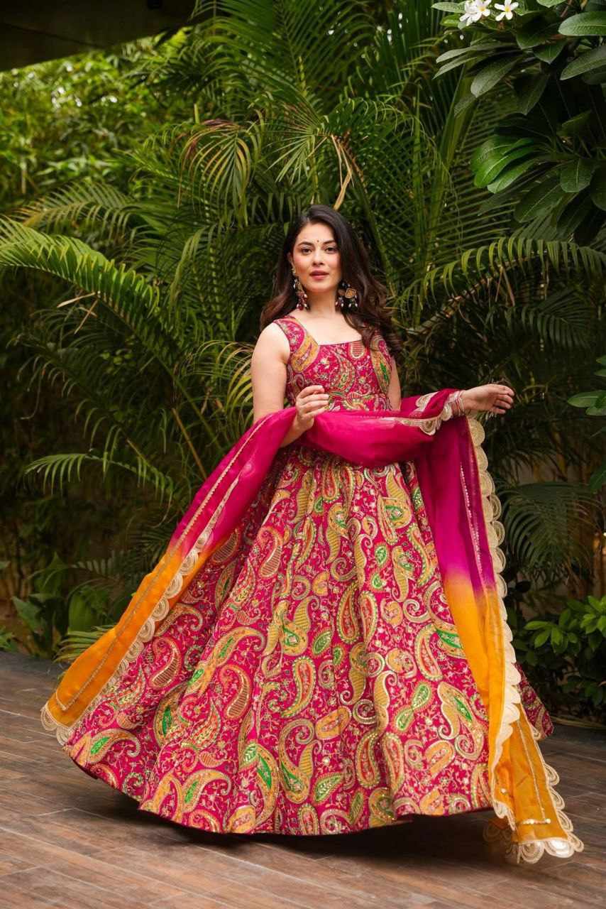 Anarkali Gown – Digital printed Jimmy Organza silk suit with a huge, elegant flair