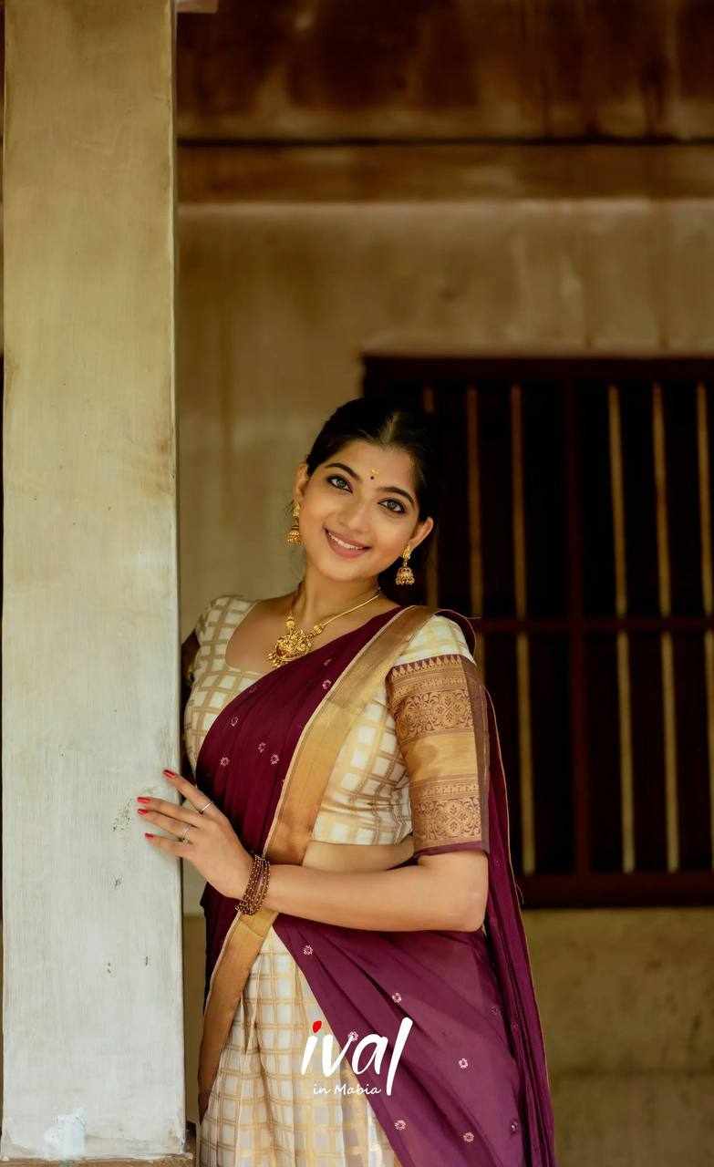 | Name : | KP-W 352 Kanjiveram Silk Maroon Colour Half Saree |