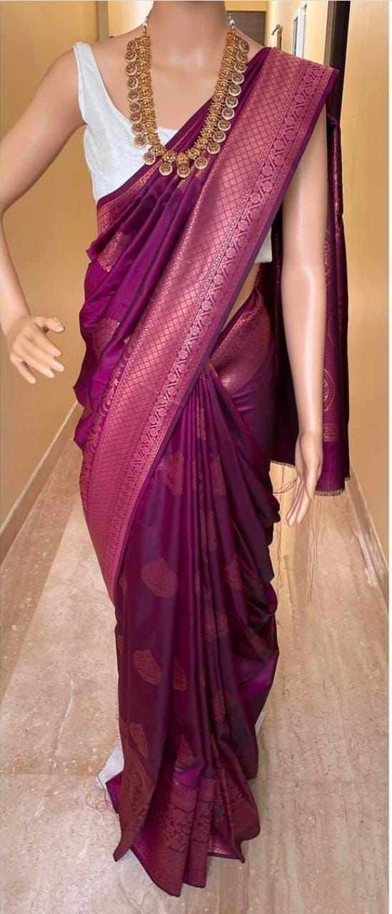 MF 2040 SOFT LICHI SILK CLOTH WINE COLOR SAREE