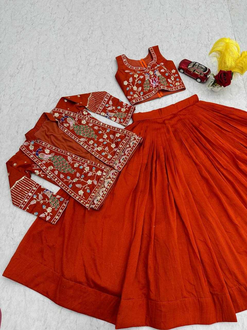 PC 559 New Modern Party Wear Red Lehnga With Jacket has been successfully added to your cart .